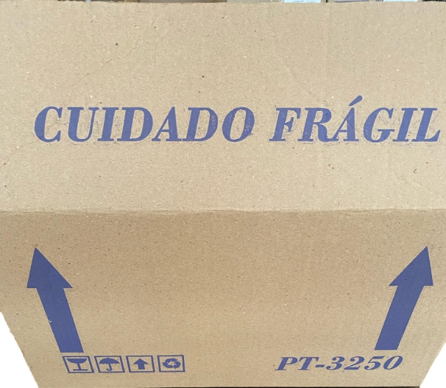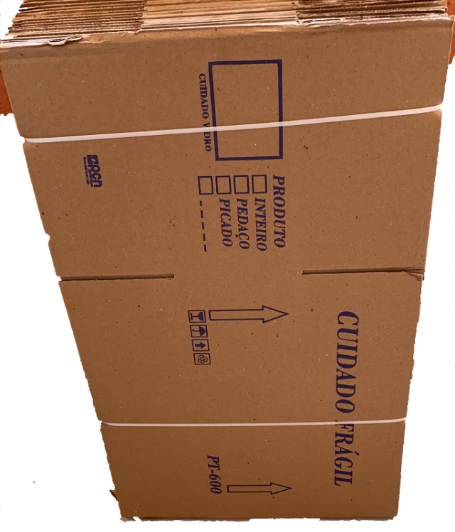 caixa já vai com avisos (cuidado frágil, este lado para cima ).