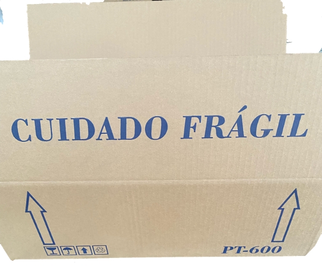 caixa já vai com avisos (cuidado frágil, este lado para cima ).